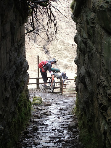 After a bite of lunch at a cafe in slaidburn, we headed back in Ed's van to Gisburn, this time focussing on doubles (jumps) and drop offs. Ed has a cool teaching manner, really getting his message across without being condescending or overly complicated, and we were soon getting smoother and slicker. After the drops session, we returned to the jumps at the bottom of the Hope 'A line' trail, and remarkably, most were hitting the jumps with confidence and speed. Result.